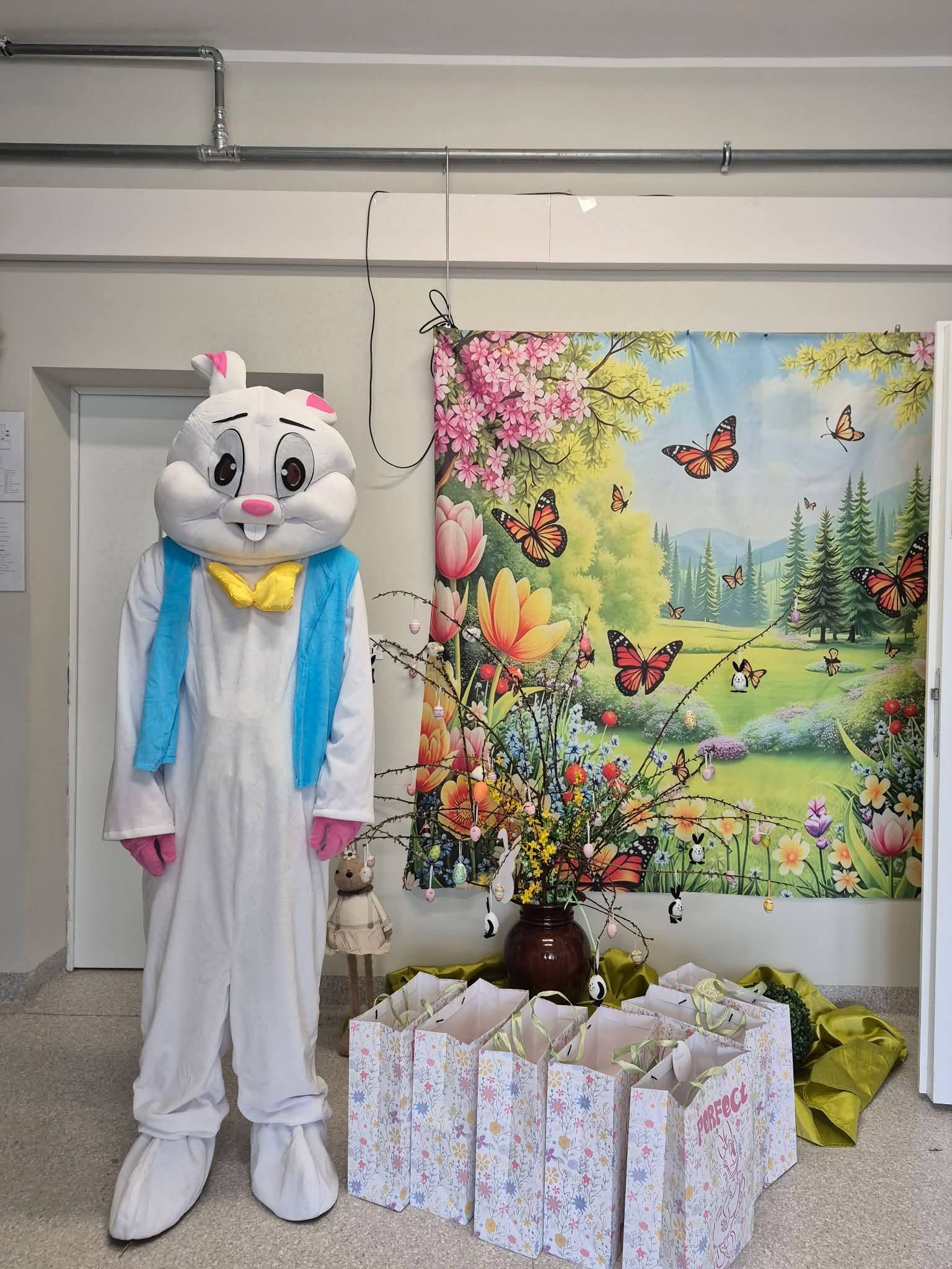 tj. Zajączek, który odwiedził nas już 2 rok z rzędu i rozdał drobny upominek dla każdego Przedszkolaka.